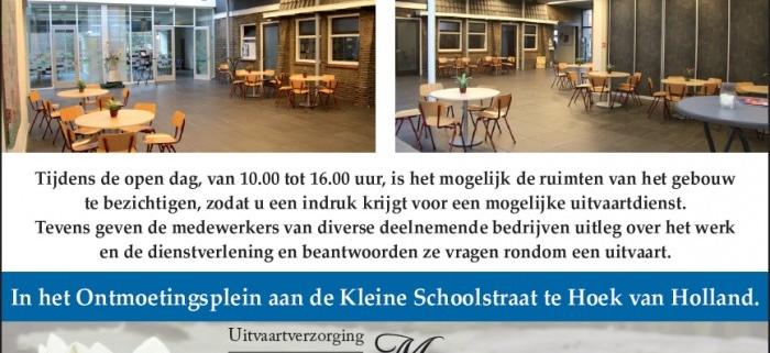 /in nieuws /door adminAankomende 1 februari organiseren wij samen met andere bedrijven actief in de uitvaartsector een open dag. Deze zal plaats vinden in Hoek van Holland. Voor meer informatie zie poster.